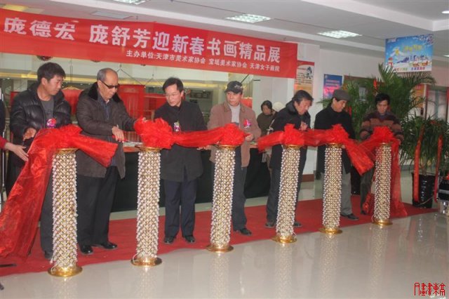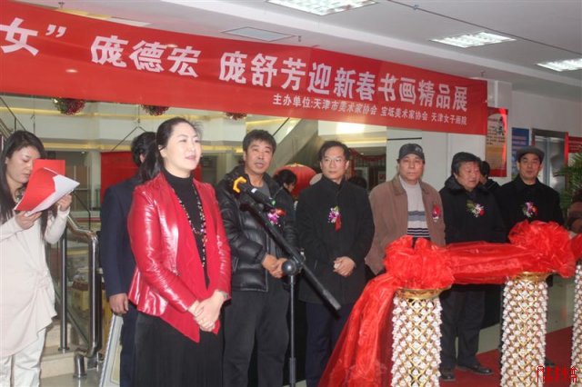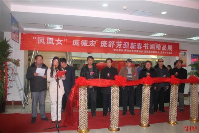 本网讯:2013年元月8日,“凤凰女”庞德宏、庞舒芳迎新春书画作品展在天津宝坻开幕。