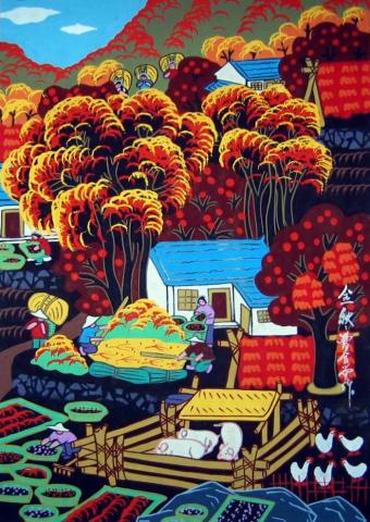 通俗画的一种。多系农民自己制作和自我欣赏的绘画和印画。其范围包括农民自印的纸马、门画、神像以及在炕头、灶头、房屋山墙和檐角绘制的吉祥图画。现代农民则有在纸面上绘制乡土气息很浓的绘画作品,自五十年代以来,逐渐形成了陕西户县、安塞、江苏邳县、六合,上海金山等地的农民画乡。 历史悠久,人杰地灵。贾湖遗址出土的骨笛和契刻符号距今已有8000年历史;作为全国文化先进县,舞阳文化底蕴深厚,艺术繁荣,孕育了一大批享有盛誉的农民画作家。这里的农民画以独特的风格蜚声海内外,被国家文化部命名为“中国现代民间绘画画乡”。 舞阳农民画在经历了10年左右的低潮后,当地一些画界的领军人物开始重新思考农民画的出路。5月15日,舞阳农民画院院长连瑞卿牵头,召集当地数十名农民画作者,组成创作骨干培训班每月定期进行培训。同时,受邀前来的还有舞阳农民画的创始人张耀先、王文浩等老前辈,为后来者讲述并描绘了该画种的起源、发展历程及今后发展方向和蓝图。从中,我们或许会更加清晰地认识舞阳农民画这一极富地域特色的艺术奇葩。 |