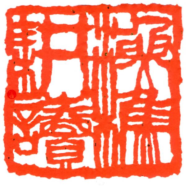 辛宇凌金石撕纸艺术得益于对中国篆刻艺术与民间剪纸的研习,所谓篆刻艺术,乃于金属、象牙、犀角、玉、石等质材之上雕刻以篆体文字之艺术。因以制作印章为主,又称印章艺术。作为国粹之一,经历了漫长的发展过程,形成了一以贯之、厚重的悠久传统。其融万千气象于方寸之间,向为历代文人墨客所钟爱,钤记落款,观赏把玩,可从中获得无尽的审美愉悦和艺术享受。剪纸则是中国民间流行的一种历史悠久的镂空艺术,所谓剪纸,就是用剪刀将纸剪成各种各样的图案。将中国篆刻艺术与民间剪纸艺术巧妙结合,就形成了具有金石韵味的撕纸艺术。