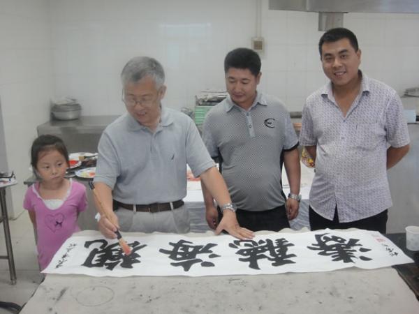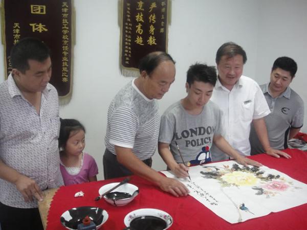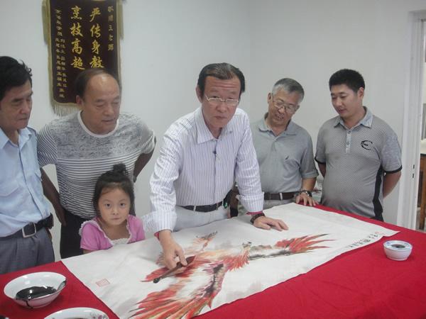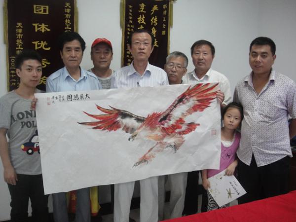 8月24日上午秋高气爽风和日丽,应聚星和酒楼总经理叶俊杰、副总经理何健的邀请,津门书画家郁三阳、张松安、要华民、金殿礼、吴珺一行五人,兴高采烈的来到聚星和酒楼,受到了酒楼领导和员工的热烈欢迎。 书法家郁三阳、张松安凭借多年书法功力,写出别有个性独特的书法大作。金殿礼的红梅花儿开鲜艳夺目惹人爱。青年画家吴珺笔下的岭南画派的大牡丹栩栩如生。曾几何时要华民的大红鹰在津杭烹饪峰会上一亮相,受到了天津餐饮业的特别关注,也吸引了众多的书画爱好者。今天最新创意泼金大红鹰“大展宏图”画作的展现,第一次看见以红色代墨画出大红鹰纷纷赞叹不已,极大的满足了二位总经理的愿望和要求,红色的鹰象征着鸿运连当头,给生意带来福运和勃勃生机。同时也折射出在文化兴国大发展的今天,广大的书画爱好者们渴望欣赏无穷无尽的书画作品,人们丰富的文化生活是大事所趋。 最后,津门书画家和聚星和酒楼员工们在大红鹰画作前合影留念,一场别开生面的笔会圆满结束。 |