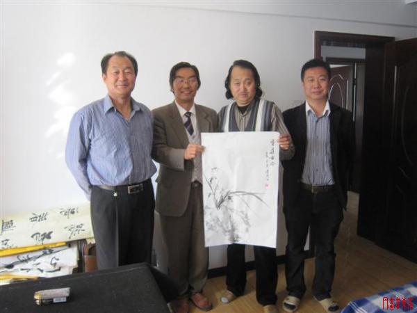 本网讯:2012年10月25日,本网运营总监梁宗前与花鸟画家陈学周西部交流采风。 图为:酒泉市书法家协会主席朱明山,北方作家主编夸父,天津花鸟画家陈学周,京东书画艺术网运营总监梁宗前。 |
