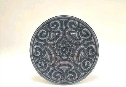 漆器之宝张成造款雕漆云纹盘。张成是元代雕漆大家,其传世作品被一致认为是雕漆作品里的珍品。张成造款雕漆云纹盘为故宫漆器的代表作品。高3.3cm,口径19.2cm。盘木胎黑漆,内外均雕云纹。堆漆甚厚,晶莹照人,刻工圆润。从此件具款的剔犀圆盘可知张成不仅是剔红高手,剔犀技巧也精湛至极。