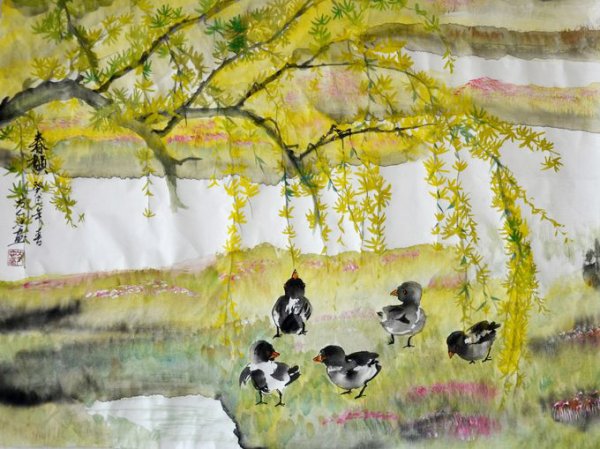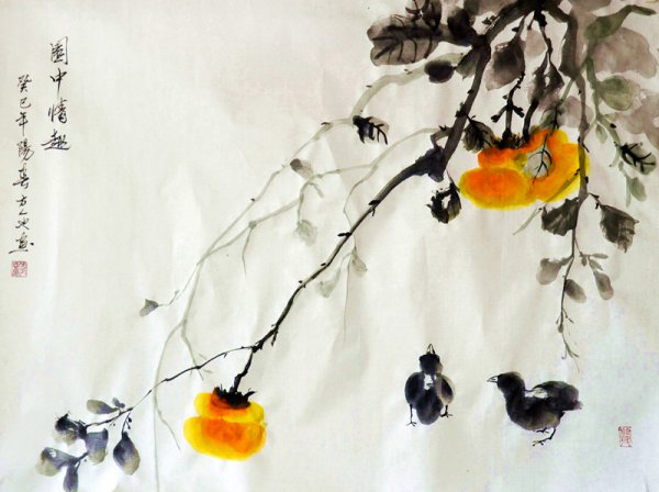 由中国书画艺术发展研究院院长、著名画家方人也研发的丝绸国画已经通过国家版权局登记注册。部分作品已经入编《中国邮册》这也是方人也研发彩色宣纸国画后的又一发明, 伴随着艺术品收藏的走俏,风韵浓郁的国画作品成为了装饰界和收藏界炙手可热的经典,一幅雅致清丽的国画作品,可以说是观赏价值与收藏价值并举,非常的难得。今天给大家呈现的是著名画家方人也的力作,他的笔下,大凡花鸟虫鱼、山水、人物无一不精,无一不新,为中国彩色宣纸国画之后史创造了一个质朴清新的艺术世界。此幅《园中情趣》,就是一幅丝绸国画,是方人也老师研究出来的新作,采用上成的杭州丝绸和进口国画颜料绘制而成,画面中黄色的柿子沉甸甸地低垂到地上,展现着丰收的喜悦,两只小鸡好奇的看着,非常惹人喜爱,情趣十足。酣畅淋漓的笔墨线条,再加上气韵独到的山水意境,完美呈现出中国水墨艺术的精髓,非常值得典藏。 |