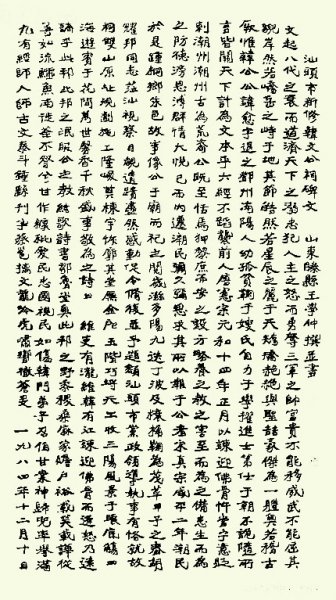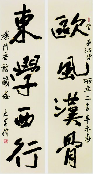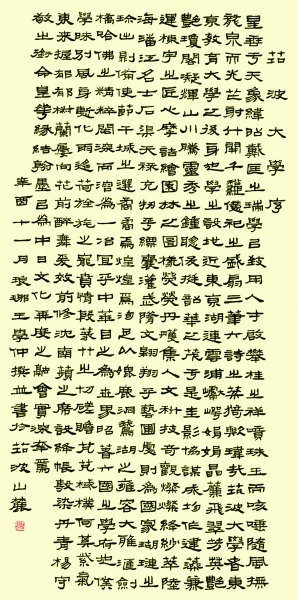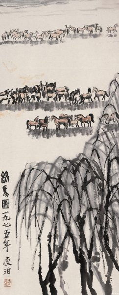 藉予诗、书、画的抒情方式,以生动感人的艺术境界和深刻的思想内涵,表现人的精神世界并揭示出带有普遍意义的艺术法理,这是一个真正的艺术家所崇的艺术高度和富有艺术责任感的文化自觉。王学仲先生在迄今80多年的艺术实践中,一路践行着这种责任和使命。他的治学“二言”和“四我”、“四感”等艺术主张,就是他在实践中的艺术思想体现——“二言”:欧风汉骨,东学西行。“四我”:扬我国风,励我民魂,求我时尚,写我怀抱。“四感”:文化的厚重感,历史的沧桑感,诗人的苍凉感,艺术的高贵感。这既是他的艺术观,也是他的文化哲学观。 站在这种高度,力行诗、书、画艺,既需要禀赋和能力的造化,又需要勇气和责任的储备。王学仲先生1925年生于山东滕州一个书香门第,5岁始练书法、习绘画、诵诗文、背诗韵,从小打下扎实的文化艺术功底。王学仲工书,取法远追汉魏晋唐以上,其楷师承三国魏钟繇、晋唐诸经卷法帖,融化出了他的苍古、清丽两种楷书风格。王学仲先生在碑、帖学文化取舍方面,特别钟情碑学,少年时代就自立“字学魏晋而上”的思想目标,沉浸北魏多碑几十年。康有为在《广艺舟双楫注》中说:“凡魏碑,随取一家,皆是成体,尽合诸家,则为具美。”王学仲先生度势北碑多种审美元素后,使得其书气格高古,线条拙朴,用笔和结构方圆变化、奇险合度,阳刚之美跃然纸上。其60岁所书的楷书《汕头市新修韩文公祠碑文》,化碑为楷,用笔以行入楷,略带隶书笔意,激昂雄健,顿宕多姿,风韵高古,自然朴拙。这是他的碑学思想养心沐手的结果。 王学仲先生的隶书是他“文化的厚重感”艺术思想的迹化之一,他深入汉隶诸法帖,汲取其古拙、秀挺、朴穆之养分。其中年时期隶书《筑波大学序》,融合《张迁碑》《礼器碑》《石门颂》等汉隶的线条语言和结字特点,用笔上稍微简化一波三折和轻重顿挫,主营逆笔藏锋,使其隶富有古厚朴茂、拙隽端严、圆劲刚健、骨力弥漫的多元审美效果。 他的行书先师颜真卿的《祭侄稿》,后旁参康有为、于右任。他宗法颜公的行书,朴拙中见清健,帖味中见碑意。而取值南海的行书,如:《书存山岳气,画冶众生心》,则笔沉墨酣,线性藏篆蓄碑,富有圆劲、纵逸的个貌。他在书法中迹化自己的艺术思想,主要在两个方面:一是作品风格,二是文词意义,王学仲先生常自书己作,把诗中蕴蓄的个人艺术思想再用书法形式表现,并力求意境的亲和,如其草书自作诗:“何事雕蟲吟咏勤,挥毫直扫九天云。淋漓大写情方快,不作浅斟低唱文。”诗有豪放昂然之气,书也有豪爽利落之趣。他在不同岁月、不同场合多次所书自立的治学二言行书“欧风汉骨,东学西行”,体势耸拔,雄健洒脱,豪迈大气。此书是他化古为我,融百合一,从“有法”到“无法”的艺术境界的迹化与升华,是他“字必己出”“艺必己出”的艺术思想的注释。此件书作意境与文词意境相互亲和。体现出了他的“四我”中的“写我怀抱”的个性和“四感”中的“文化的厚重感”这种取值多元、高古的艺术境界。从他整个的诗、书、画艺术实践中看,反映出他的古为今用,中西互融的历史唯物主义和辩证唯物主义的文化取值、文化自信的思想风貌。 王学仲先生是一位极富艺术天赋和艺术情操的大家,诗、书、画皆工,且造诣不凡。他的诗词和他的书、画一样,雄浑豪放而又清健俊逸、朴雅自然而又发乎性情。他曾被徐悲鸿先生誉为“诗书画三怪”。王学仲对于恩师徐悲鸿的评价终生难忘且很清醒,为此他曾作诗《自笑》勉励自己:“博得徐公三怪名,微山湖畔一狂生。津沽燕市传诗句,自笑才疏倚马缨。” 绘画艺术是王学仲先生艺术思想迹化的重要形式载体,接受专业训练时间最长的也是绘画,从1942年到1953年在北平京华美院、中央美院等专业院校前后12年的科班教育中,博得徐悲鸿、齐白石、黄宾虹、吴镜汀等名师教益。王学仲先生绘画擅山水,他画山水,善从历史、时代和人文的深度思想开去,不是从物象到物象的描摹,而是将一山一水、一草一木、一花一鸟,都迹化为自己的思想并赋予物的灵性和生命的关照以及对文化的关怀,上世纪八、九十年代,他不顾年高体弱,肩扛历史题材重任,多次带病深入大西北,完成了《汉家陵阙》、《西夏王陵》、《腾格里沙海》等西北系列巨作。作品既体现了“文化的厚重感、历史的沧桑感”,又具“励我民魂”的积极意义。 他的画,画中有书——方圆互济的线条线质线性,自然丰富的墨色变化;画中有诗——诗一般的画题、诗一般的意境,他常把自作诗题跋在画中,这都得益于他对书法的深刻理解和对古典文学的悉心运用。他作画,从构图到作品意境都善将物象放在诗的情境中思考,实现“诗”与“画”的互相渗透。他的题画诗,不是对画的简单命名或注解,而是对主题和意境的深化,如他画雨中天朗的作品自题诗曰:“但觉心迷烟月里,不知身破几重云。”一个平凡的绘画题材,因这诗句而使意境顿然深刻起来。他的一些只题画名,不题己诗的作品,同样具有诗的震撼力量和他作为诗人画家的诗性表达,如其代表作之一1975年创作的《饮马图》——河岸垂柳,水面清悠,三排群马,畅饮自由,相安自在,无争无斗。这是画家在那个特殊的时代以诗人的勇气与正义作含蓄的呐喊——让万物回归本性,让生命怡然自适!他的画,在笔法和色彩运用