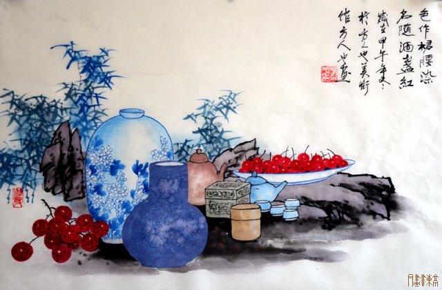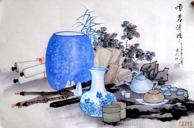 流年似水,阡陌花开。在多年的艺术生涯中,方人也仔细研究着青花瓷的观察与制作手法,并很好地承袭了传统民间工艺的精髓。他不但扎根传统,还在青花瓷传统绘制工艺的基础上追求卓越、追求创新。对青花瓷制作方式与绘画技艺深刻的认识与把握,使他可以得心应手的传达内心的情愫,以自己别出心裁的构思赋予了青花瓷新的生命形式,令人回味无穷。不仅如此,画家还悄悄地汲取了一些民间艺术造型的养分,创作出来的青花瓷画有趣有味,充满了淳朴和清新的文化气息。在他手中,那气象万千的青花瓷仿佛具有了人的情感,无论是各种形态的瓷瓶均各具情态,造型充满艺术美感。在那莹莹在青花瓷上,有种朦胧的感觉,素洁凝芳,淡雅含蓄,温婉柔美,宛若一位娇俏的女子。 方人也绘制的青花瓷不但造型美观,富有装饰情趣,而且洋溢着一种空灵、婉约的文人意趣。画面整体布局虚实有致,吸收了中国传统工笔花鸟画的意趣布局,气势生动有鲜明的个人特色。除了对青花瓷的造型、色彩、布局上提现出精致的装饰美之外,他还在青花瓷身上赋予了深厚的人文精神,恰到好处地表现出了青花瓷的生命与特质。从那优雅的青花瓷上,我们可以看到画家的从容、智慧、幽默、平和、谦虚、乐观。 |