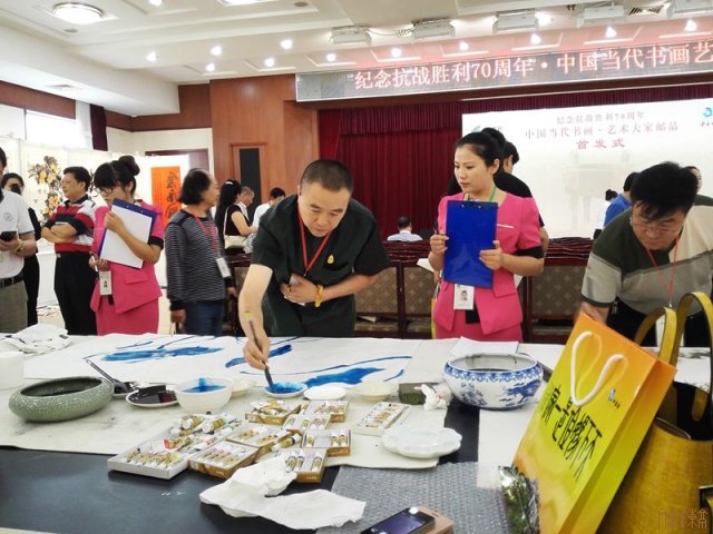 本站北京电 2015年9月20日上午九时,由中国国际集邮网主办的“纪念抗战胜利70周年---中国当代书画艺术大家邮品”首发式在中国人民解放军总政治部沙河培训基地隆重举行。