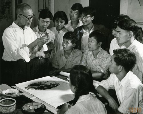 1963年潘天寿给国画系花鸟班学生上课