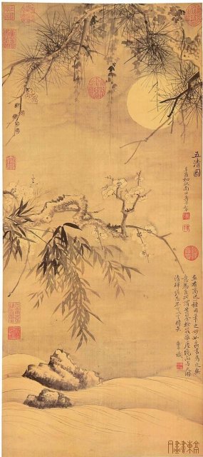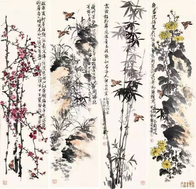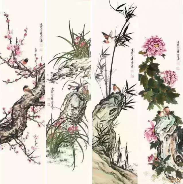 中国画中“四君子”是指梅、兰、竹、菊,特别是在花鸟画中,它们常被文人雅士用来表现高尚的情趣、正直的气节、虚心的品质和纯洁的感情,因此,素有“君子”之称。 “四君子”之一的梅花,较耐寒,在早春即可怒放,与松、竹一起被称为“岁寒三友”。据画史记载,南北朝时已有人画梅花,到北宋画梅就成了一种风气。元明以来,用梅花作画更多。元代最大的画梅大师应该首推王冕,自号梅花屋主,他的水墨梅画一变宋人稀疏冷倚而为繁花密蕊,给人以热烈蓬勃向上之感。明清的画梅者举不胜举,如刘世儒、石涛、金农、汪士慎等,从风格来看他们大体继承了宋人的疏冷和元人的繁密两种画风。画梅需有画梅人的品格,有人称之为“梅气骨”。 兰花一般都被寄托一种幽芳高洁的情操,《琴操》中曾记载:“孔子自卫返鲁,隐谷之中见香兰独茂,喟然叹曰:芝兰当为王者香。”兰花遂所谓“王者之香”。但兰花入画比梅花晚,大概始于唐代。到了宋朝,画兰的人便多了起来,据说苏轼就曾画过兰花,而且花中还夹杂有荆棘,寓意君子能容小人。南宋初,人们常以画兰花来表示一种宋邦沉沦后不随世浮沉的气节,当时的赵孟坚和郑思肖,被同称为墨兰大家。而清人画兰者众多,而以郑板桥最痴。他的题兰诗有七、八十首。他在《折枝兰》诗中写道:“多画春风不值钱,一枝青玉半枝妍。山中旭日林中鸟,衔出相思二月天”郑板桥兰画得好,书法也好,人称“板桥作字如写兰,波磔奇古形翩翩。板桥作兰如写字,秀叶疏花见姿致”。 竹入画,大略和兰相当,也始于唐。唐玄宗、画家王维、吴道子等都喜画竹。到宋代,苏轼发展了画竹的方法,把枝干、叶均用水墨来画。以后的元明清时代,画竹名家辈出,只要是山水或花鸟画家,没有不画竹的,而且开始强调竹的整体气势。赵孟頫、倪瓒、夏昶等各有千秋。在众多的画家中,郑板桥的画竹也堪称为一绝。成语“胸有成竹”便是郑板桥借助于笔墨,挥洒“手中之竹”的最精彩注脚。 陶渊明有诗“采菊东篱下,悠然见南山。”菊花是名士隐士的最爱,但入画稍晚,大略始于五代。比起梅兰竹来说,表现菊花的作品则相对要少得多。据《宣和画谱》所记载,宋代黄签、赵昌、徐熙、滕昌祐、黄居寀等名家都画有寒菊图。到了元代及明清,在菊花的画法上发展了水墨写意,丰富了技法的表现。如元代苏明远、柯九思,明代的沈周、唐寅、陈淳,都是水墨写意的画菊名家。清代画菊者更是名家辈出,明末清初邹显吉善画菊,清人陆廷炯与周颢齐名,有“陆菊周竹”之称。吴昌硕也是画菊的大家。 梅兰竹菊入画,丰富了中国画的题材,它们不但本身富有形式美感,而且可以令人联想起人类的品格,既便于文人们充分发挥笔墨情趣,又便于借物寓意,因此,描画“四君子”之风至今不衰。 |